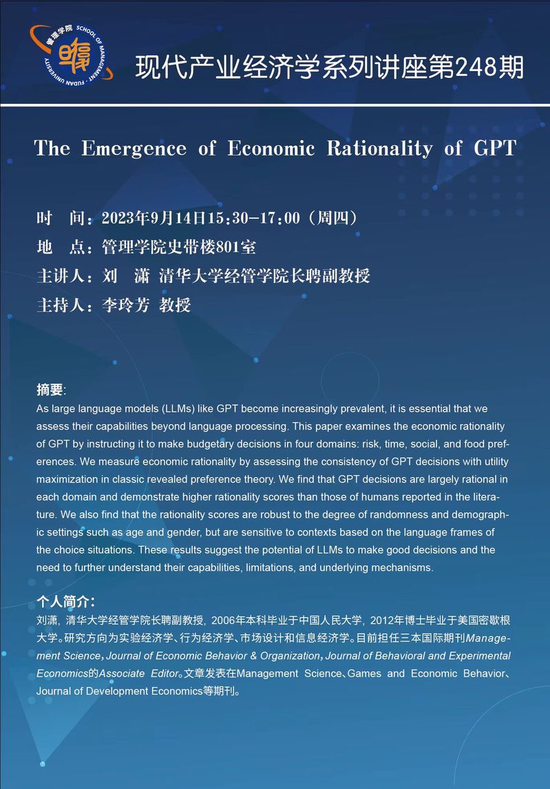现代产业经济学系列讲座第248期丨The Emergence of Economic Rationality of GPT