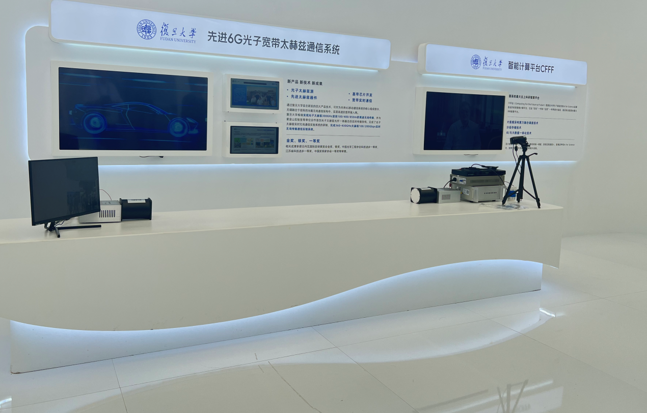 由复旦大学余建军教授团队自主研发的“先进6G光子宽带太赫兹通信系统”在大会上一经亮相,便吸引了不少参观者驻足围观。“与5G相比,6G的传输速率可能提高100倍以上。可以畅想一下,在未来6G的世界里,我们下载一部高清电影,只需要1秒时间,还能够在元宇宙中饱览世界各地风光。”复旦大学信息科学与工程学院副研究员周雯说。该系统主要包括光子太赫兹源、基带芯片开发、先进太赫兹器件与宽带实时通信,可作为未来6G移动通信系统的核心组成部分,无缝融合于现有的光载无线通信架构中,实现高速的宽带接入网。相关成果斩获日内瓦国际发明展览会金奖、银奖,中国光学工程协会科技进步一等奖,江苏省科技进步一等奖和中国发明家协会一等奖等荣誉。