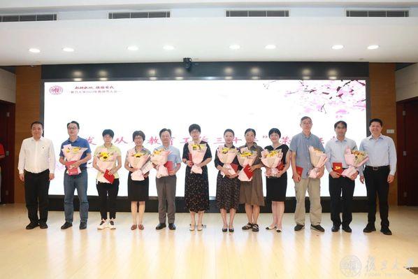 9月8日上午,复旦大学召开“躬耕教坛,强国有我” 2023年教师节表彰大会。会上,2023年“钟扬式”好老师、好团队名单公布,93位教职工获颁“教育工作三十年纪念”荣誉证书。