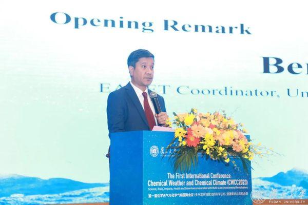 中国科学院院士、复旦大学校长金力,世界气象组织(WMO)首席科学家、研究与创新司司长尤尔克·鲁特巴赫(Jürg Luterbacher),联合国环境署(UNEP)亚太区域办公室、东亚酸雨网络(EANET)协调人伯特·费边(Bert Fabian),空气质量监测、分析与预测国际重大研究计划(MAP-AQ)主席盖伊·布拉瑟尔(Guy Brasseur),国际科学理事会(ISC)副主席小谷元子(Motoko Kotani),印尼国家研究创新署署长拉克萨纳·特里·汉多科(Laksana Tri Handoko),中国21世纪议程管理中心副主任柯兵,上海市科学技术委员会副主任谢文澜依次发表开幕致辞。中国科学院院士、复旦大学副校长张人禾主持开幕环节。