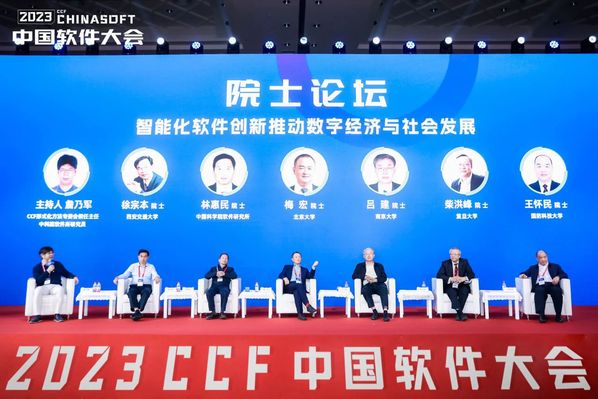 院士论坛也是本次会议的一个焦点。该论坛由中科院软件所研究员詹乃军主持,邀请了林惠民、徐宗本、梅宏、吕建、柴洪峰、王怀民等6位中国科学院院士、中国工程院院士,围绕“智能化软件创新推动数字经济与社会发展”主题,就计算机软件与人工智能的融合创新方向及其对数字经济和社会发展的作用、人工智能对计算机软件带来的机遇与挑战、以及智能软件的发展方向进行了热烈探讨。