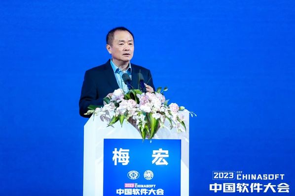 梅宏在致辞中回顾了中国软件大会的发展历程。今年近2400人参会的中国软件大会在CCF历史上、在中国软件历史上写下了浓墨重彩的一笔。梅宏鼓励参会人员在当前的数字化时代探索智能化软件促进社会数字经济和社会发展所面临的机遇和挑战。
