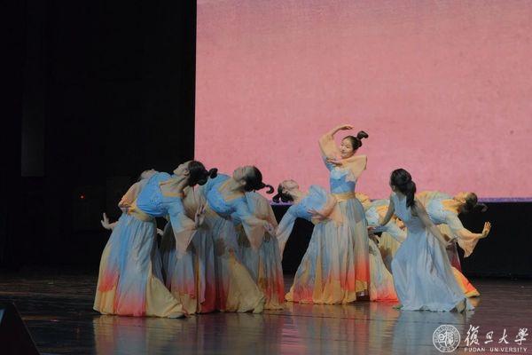 11支队伍展演结束,复旦大学学生舞蹈团带来舞蹈《寤俑》,女生梦中穿梭,千年文化款款走来。