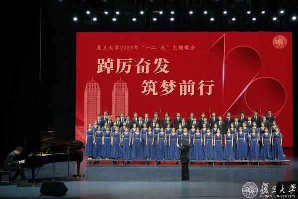 12月5日,由共青团复旦大学委员会举办的“踔厉奋发、筑梦前行”复旦大学“一二·九”主题歌会决赛在相辉堂北堂圆满举办,11支合唱队伍在相辉堂放声高唱。