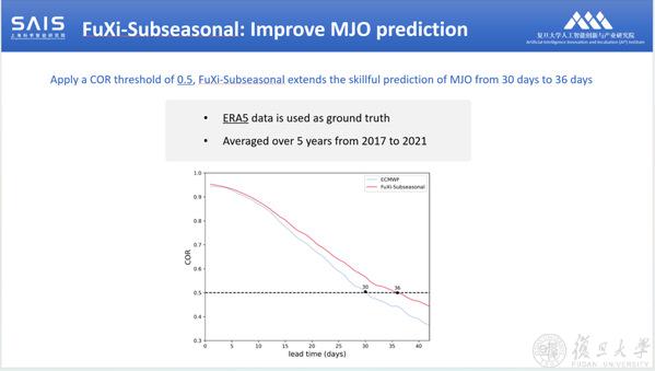 特别值得一提的是,“伏羲”次季节大模型显著增强了预测马登-朱利安振荡(MJO)的能力,将预测MJO的时间从30天延长到了36天,这一结果超过公认权威的ECMWF S2S的预测能力。