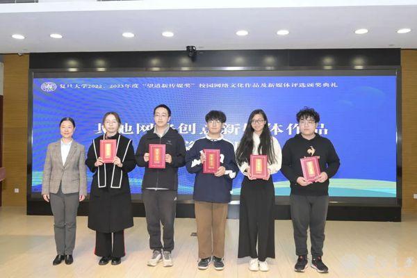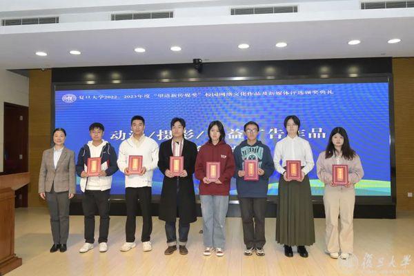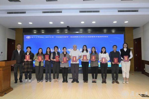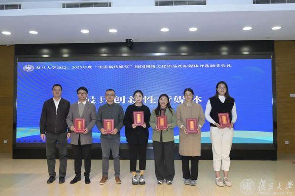 12月8日下午,复旦大学2022、2023年度“望道新传媒奖”校园优秀网络文化作品及新媒体评选颁奖典礼暨主题展览开幕式在光华楼拉开帷幕。