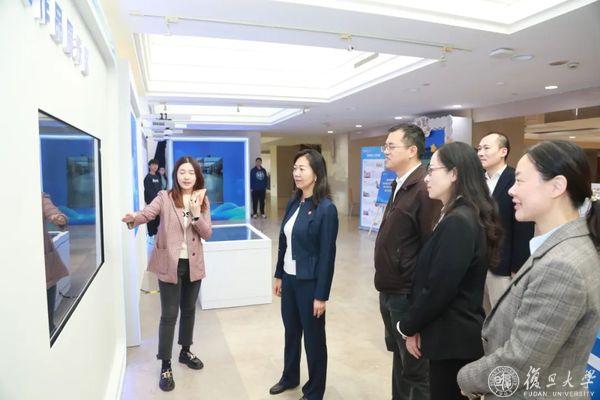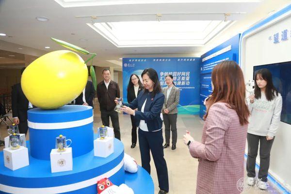 颁奖典礼举行前,尹冬梅、学校宣传部、学生工作部负责人观看和体验复旦大学网络育人工作室及院系网络育人特色项目成果,共同见证展览开幕。展览开幕式全程由学工部“云端”、“壹心”网络育人工作室向典礼主会场进行了联合直播。