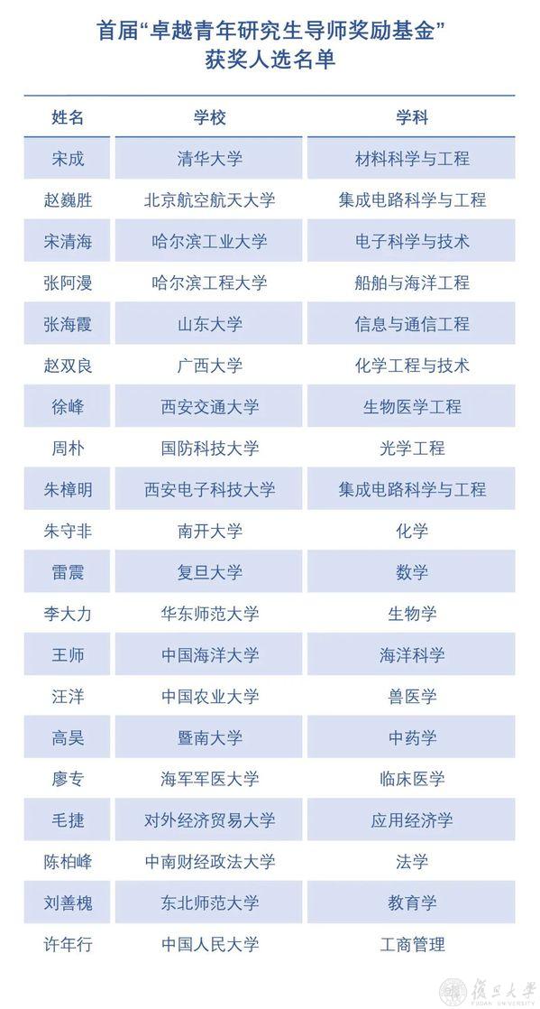 首届“卓越青年研究生导师奖励基金”获奖者都有谁?名单来了!