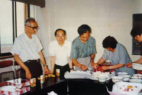 上世纪90年代,孙关宏、王邦佐、郭定平、胡雨春(从左至右)在复旦政治学教研室联欢会上