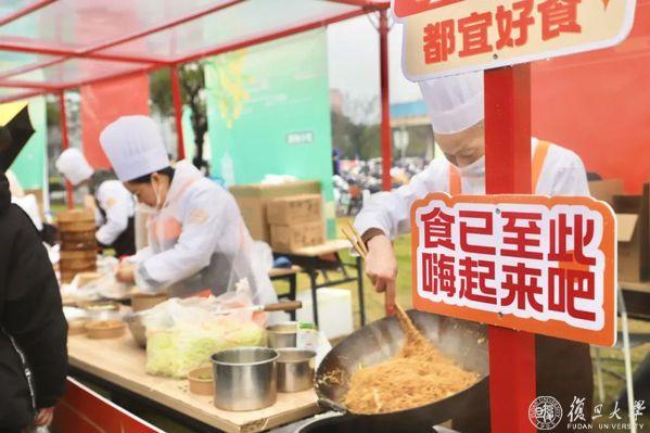早晨8点多,光华楼东草坪各个美食摊位准备就绪,新鲜的食材等待烹饪,现炒的美味带来冬日满足。展览启动仪式前,师生们已在各个摊位前排起长队。