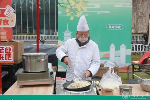 12个绍兴特色美食嵊州小吃摊位,现场制作20多种小吃美食,供师生免费品尝。