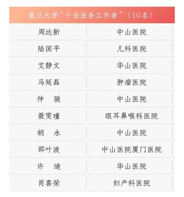 2022年度复旦大学“十佳百优”(医务)获奖名单