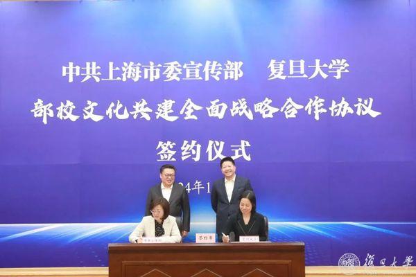 共同建设习近平文化思想最佳实践地,打造文化自信自强的上海样本和高校样本,1月8日下午,中共上海市委宣传部(下文简称:市委宣传部)与复旦大学签订部校文化共建全面战略合作协议。