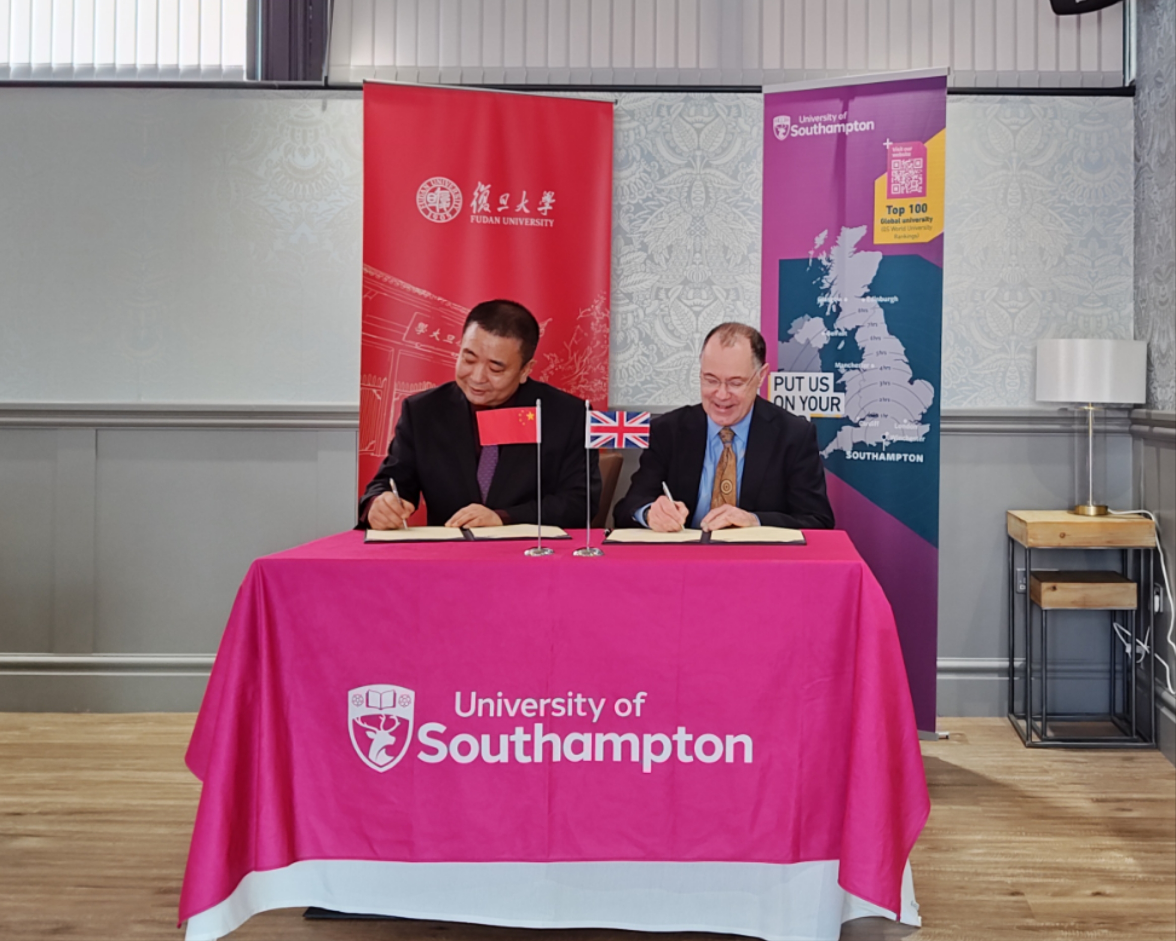 在南安普顿大学,金力与国际事务副校长安德鲁·阿瑟顿(Andrew Atherton)深入交流了在若干个学科方向开展合作办学的意向,双方同意发挥各自优势,开发合作办学项目。金力与南安普顿大学校长马克·史密斯(Mark E. Smith)共同签署两校谅解备忘录,推进落实具体合作意向。