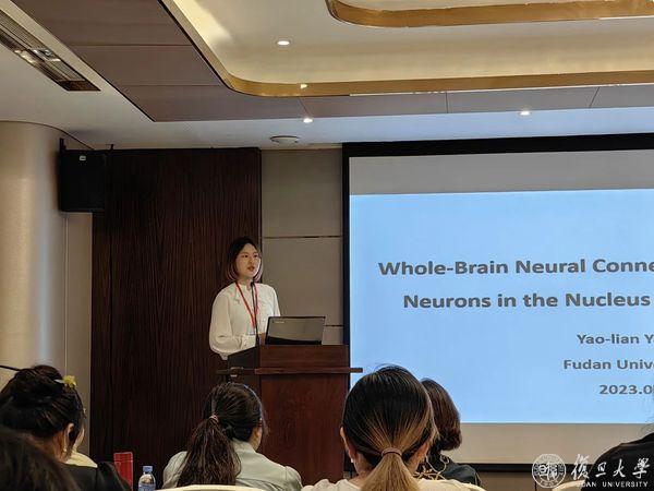 日常课业之外,杨耀莲在学术研究方面也取得突破。2022年3月,她加入基础医学院副教授袁向山的课题组,正式踏上科研之路。在袁老师的指导下,杨耀莲在课题组里与同学们通力合作,围绕Meynert基底核胆碱能神经元调控睡眠作用的课题,在形态学和行为学两个方面开展研究,并先后申报了基础医学院“正谊学者”项目和复旦大学上海医学院“卿枫学者”项目,并都顺利结项。她以共同一作身份在Journal of neurochemistry期刊正式发表了研究成果,于2023年7月受邀在中国解剖学会学术年会进行口头报告。