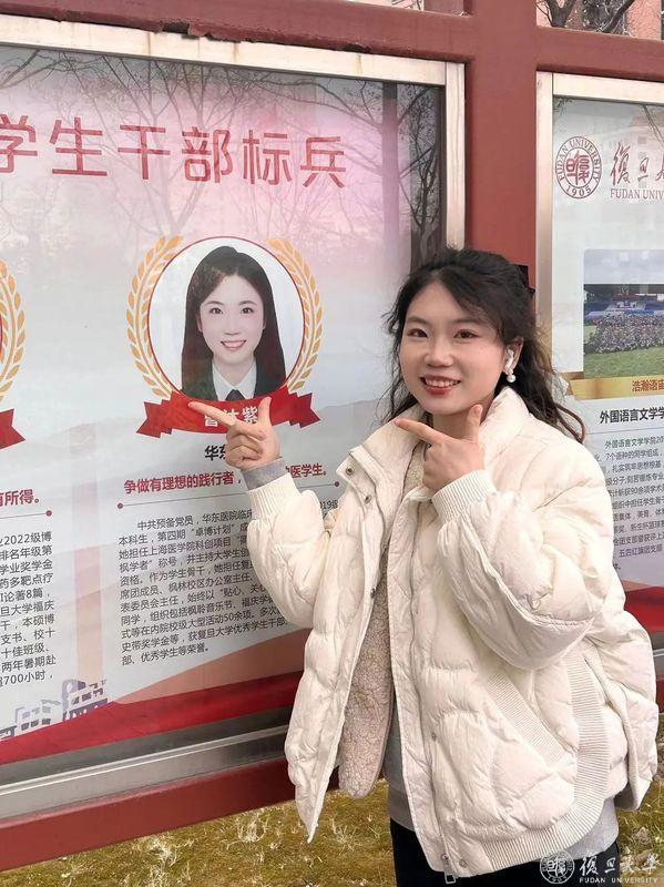在复旦学习的五年间,曹沐紫稳打稳扎,步步提升。医学是一门需要反复学习理解、反复实践的学科,认识到这一点后,她合理安排自己的学习计划:“我会反复、深入地阅读教科书,同时跟着网课进行巩固强化知识点”。考前,她还会和同学一起整理学习资料,梳理框架和重点,扎牢基础。一分耕耘,一分收获。曹沐紫的学习成绩取得稳定进步,先后获得复旦大学优秀学生一等奖学金、国家奖学金、优秀共青团干部、优秀学生干部等荣誉。