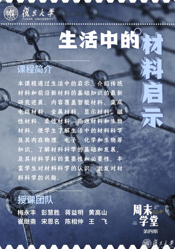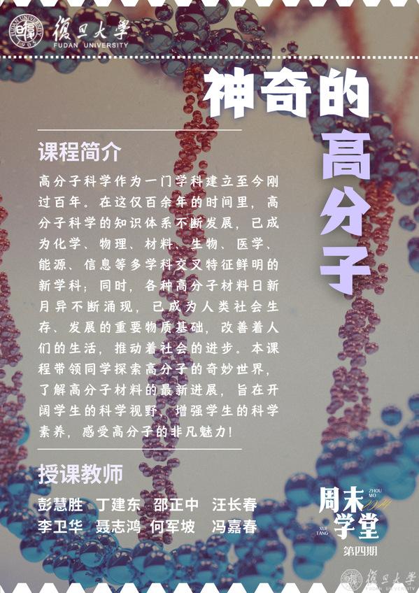 中国科学院院士、复旦大学科学技术研究院院长、高分子科学系系主任彭慧胜,周末学堂《生活中的材料启示》、《神奇的高分子》任课教师