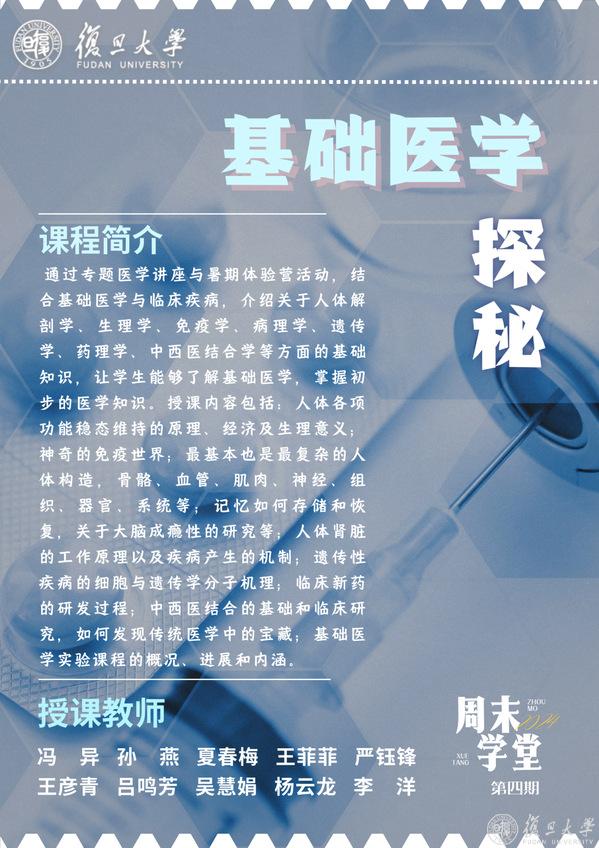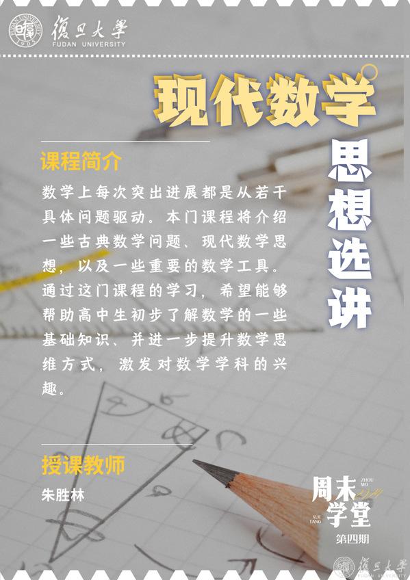 周末学堂(第四期)面向上海市各中学高一在读学生开放报名。