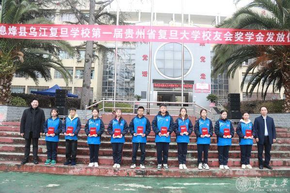 研支团的支教活动,得到复旦贵州校友会的支持。2021年校友会成立不久,校友们来到乌江复旦学校,看望在黔支教大学生,带去地球仪等教具,将社会人士捐赠的爱心基金送到38位需要帮助的孩子手上。2023年,在学校设立“博思奖学金”和“博思书屋”,今年又启动“博思讲坛”。2月29日,校友会会长王峻峰及校友代表驱车来到乌江复旦学校,举办该校第一届贵州复旦校友会奖学金发放仪式。