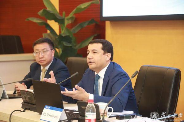 3月6日上午,乌兹别克斯坦驻华大使法尔霍德·阿尔济耶夫(H.E.Mr. Farhod Arziev)到访复旦大学,校党委书记裘新会见大使一行。