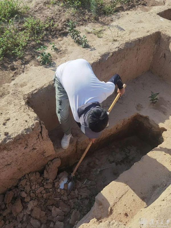 “说实话,一开始真的不适应。”张宇轩回忆,当时西安正值逼近40℃的高温天,但考古田野工作没有“双休”只有“雨休”,只有下雨天才能休息;墓室里都是虫子,男生们平时就和当地民工们一起睡在墓地旁边的板房里;当地用水紧张,没有水龙头,只有一根水管在往上滋水……“非常敬佩身在一线的田野考古人,他们的工作艰苦却意义重大。” 张宇轩说,“这段田野工作的经历也是我后续开展量化考古的基础。”
