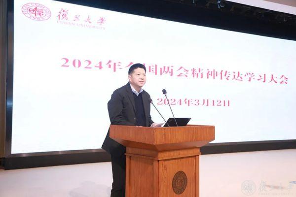 3月12日下午,复旦大学召开全校党政干部大会暨党委理论学习中心组学习(扩大)会议,传达学习2024年全国两会精神。校党委书记裘新主持会议并作总结讲话。
