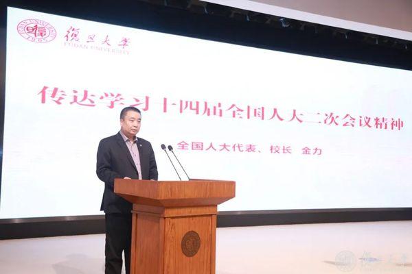 金力传达了十四届全国人大二次会议精神和习近平总书记的重要讲话精神,介绍了大会通过的各项报告和法律案主要内容、上海代表团审议和提出议案建议情况等。他强调,服务新质生产力的生长和发展,做好创新大文章,是高校不可替代、无可推脱的历史使命。学校要实现高质量发展、服务高质量发展,必须全面深化教育科技人才改革,构建一流大学创新体系,及时深入调整生产关系。全校要大力自主培养造就创新者,加快走出融合创新之路,向制度创新要效能,厚植创新文化沃土,努力实现向综合性研究型创新型大学的新跨越。