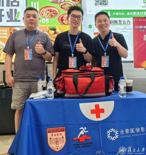 薛啸傲(中间)为第十届中国(上海)腕力公开赛作医疗保障