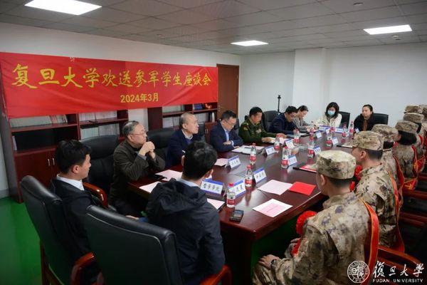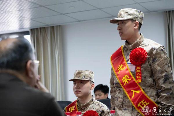 昨天(3月20日)下午,复旦大学欢送参军学生座谈会在杨浦区民兵训练基地举行。