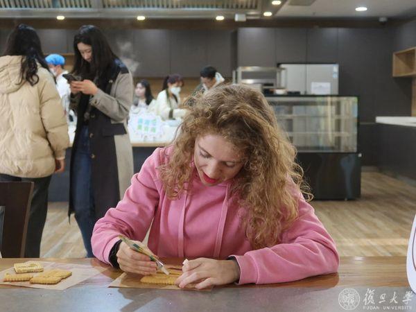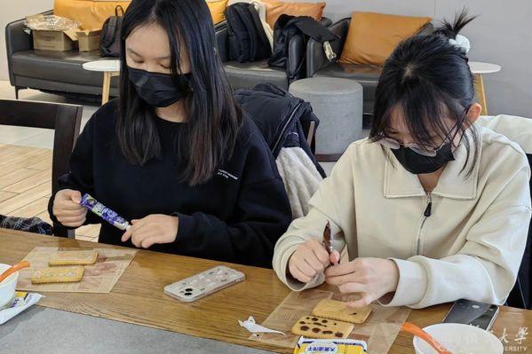 同学们现场体验手工饼干制作,用可食用绘画笔在饼干上绘制图案,澜湄流域的风土人情在笔下流淌,用味蕾记录与感受。