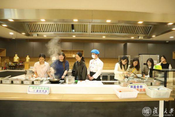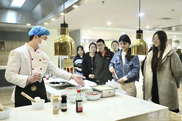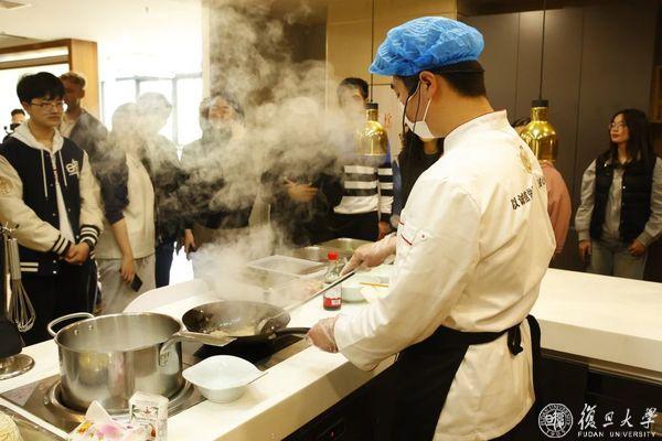 每个美食日的现场,大厨在介绍完,菜品所需的原料和调料后,便进行制作,同学们移步至厨房操作台,观看大厨现场教学。