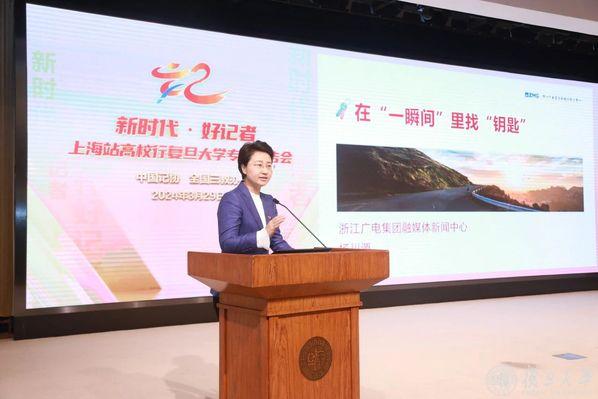上海广播电视台记者臧熹分享了自己参与报道中国航天故事的经历。他和团队坚持与媒体融合的脚步保持同频,采取挖掘内容落点、利用技术赋能、开设科普账号等方式,创新报道形式,提升传播效果。在他看来,一名新时代的好记者,应当牢记前辈们的精神,始终永葆革命之志,永怀人民之心。他希望新闻学子们能够肩负更多对新闻的忠诚和责任,在新时代传播党的政策、记录时代风云、推动社会进步、守望公平正义,让青春在新闻事业中闪耀光彩。