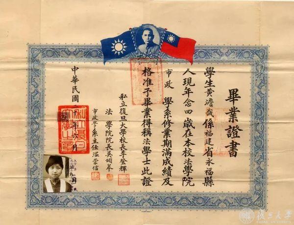 1937年汪缉熙荣获复旦法学院毕业最优者银奖牌
