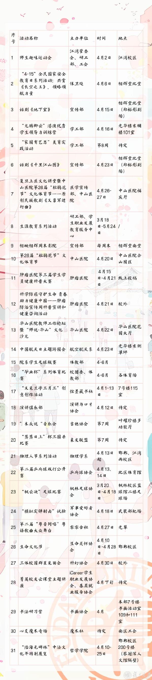 春风拂面,芳菲漫天。蓬勃的朝气昂扬,青春的旋律回荡,专属于文化校历的精彩,四月持续上演。