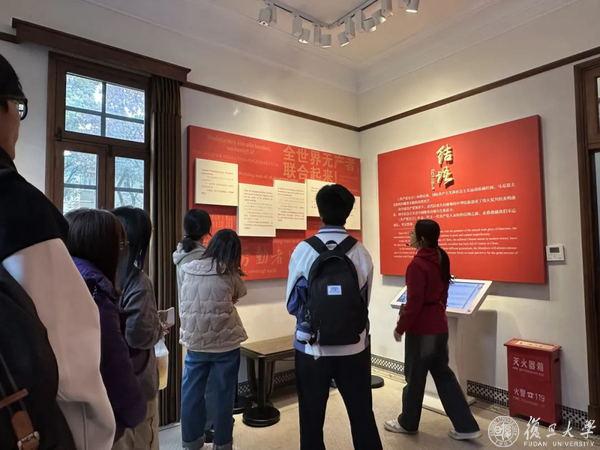 “心有所信,方能行远”——陈望道老校长故居三楼有一行字,这字旁开一方小窗,一束光倾泻而下,照在我们所处的昏暗的楼梯上。那是他用《共产党宣言》凿开的一扇窗,不大,但足以让信仰之光进入,在黑暗摸索的岁月里,照出一条隐约显现的阶梯,指引着早期共产党人探寻解决中国问题的道路。今天我也从这楼梯上走过,抚着陈望道老校长扶过的栏杆,当年照在他身上的光同样照在我身上,照我越行越远。
