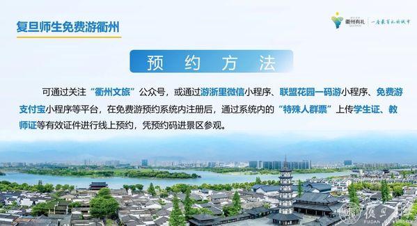 随后,现场发布产业科技需求榜、复旦师生免费游衢州政策,“网红衢州”短视频大赛启动。根据复旦师生免费游衢州政策,从今年5月1号到12月31日,复旦大学师生凭教师证或学生证,即可免费畅游衢州烂柯山、药王山、天脊龙门、龙游石窟等14个重点景区,可通过衢州文旅公众号等多个渠道在线预约游玩。