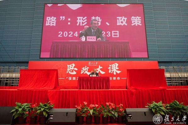 主讲人是林毅夫——我国著名经济学家、北京大学新结构经济学研究院教授、院长,北京大学南南合作与发展学院院长,北京大学国家发展研究院名誉院长。下午2点三刻,开课前,林毅夫走到正大体育场,二楼排队入场的复旦同学认出了林毅夫,纷纷在楼上向他挥手致敬。15分钟后,他走上正大体育馆的讲坛,以复旦思政大课授课教师身份,从经济学角度为青年学子们解读党的二十大报告、中国式现代化等重要论述。
