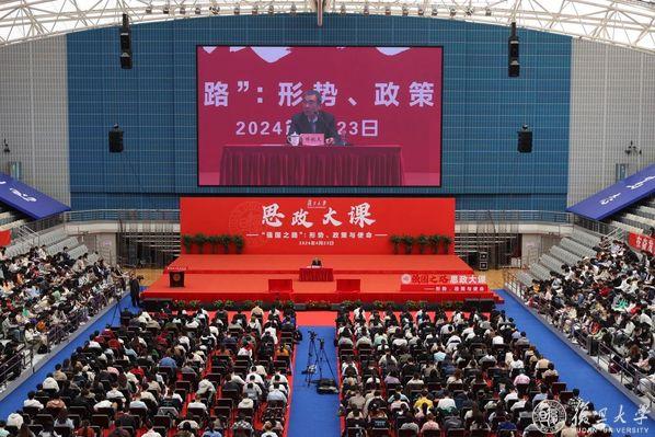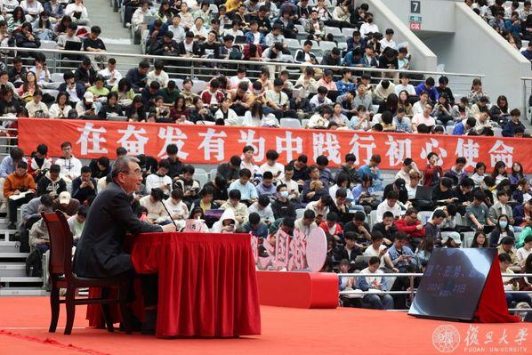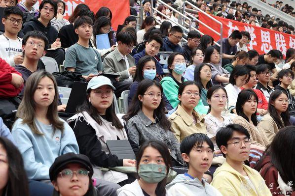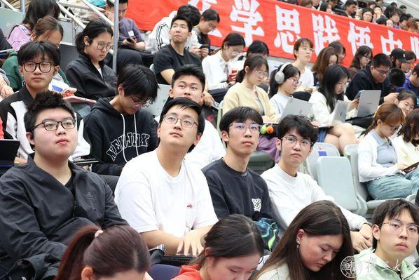 一段开场白后,正大体育馆里爆发出热烈的掌声。4月23日下午,2023级全体本科生再次齐聚正大体育馆,共同聆听本学期“强国之路”思政大课专题教学环节的最后一次课程。