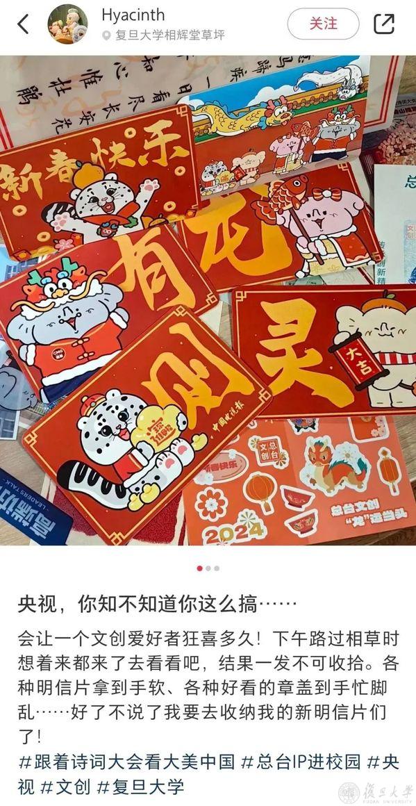 “总台IP进校园”上海站活动首站选在了复旦,有同学说,得知学校的毕业歌会有总台带来的特别环节,感觉挺意外。而在接下来的几天里,惊喜更是接二连三,同学们不仅在“一逛到底”的总台IP市集收获颇丰,还解锁了关于总台更多实实在在、可可爱爱的全新体验。