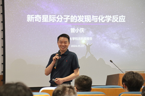 5月7日,复旦大学化学系教授曾小庆作题为“新奇星际分子的发现与化学反应”的科普报告。