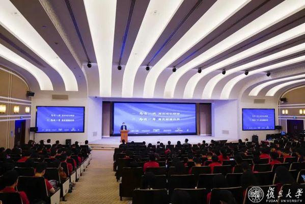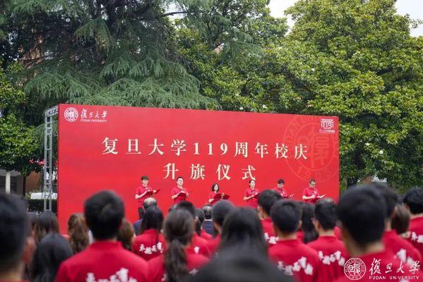 “复旦复旦旦复旦,日月光华同灿烂”裘新、金力以及在校的领导班子成员、学校各院系师生代表、医护人员代表、职工代表、校友代表等约200人齐唱校歌,共同祝福复旦119周年生日快乐!