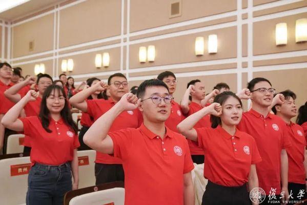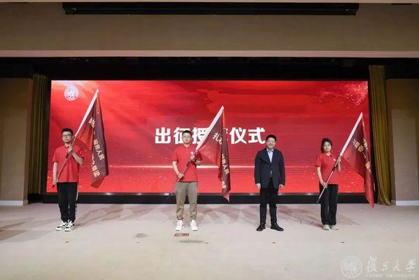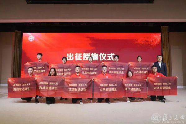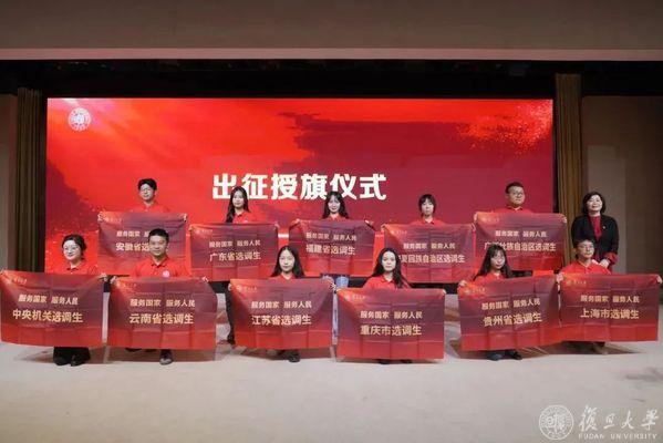 复旦大学党委副书记钱海红,复旦大学上海医学院党委副书记、副院长徐军为各地选调生代表出征授旗。