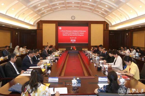 阿联酋教育部、阿联酋驻沪总领馆、阿联酋大学、扎耶德大学、阿联酋高等技术学院、哈利法大学及复旦相关部门院系负责人出席会见。