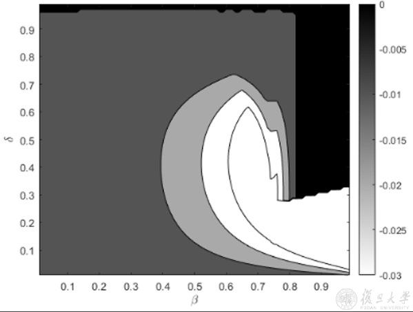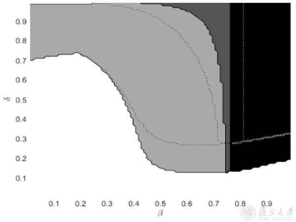 注:虚线为制度环境改善前的合约模式分界线。右边热力图颜色越深表示其断裂概率的变化幅度越小