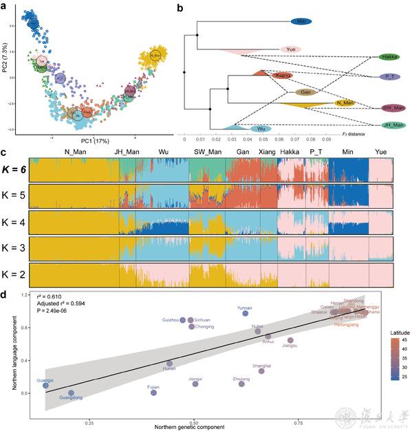 现代语言学研究院、智能复杂体系实验室张梦翰团队联合生命科学学院徐书华教授团队及金力院士团队通过跨学科证据揭示汉语方言融合与扩散模式
