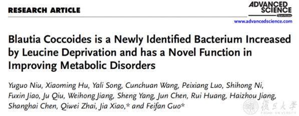 5月15日,脑科学转化研究院郭非凡教授课题组和暨南大学附属第一医院肖佳研究员团队在Advanced Science杂志上正式发表了题为“Blautia Coccoides is a Newly Identified Bacterium Increased by Leucine Deprivation and has a Novel Function in Improving Metabolic Disorders”的研究文章,首次发现了响应亮氨酸缺乏的新型肠道益生菌Blautia Coccoides在缓解高脂饮食诱导的胰岛素抵抗、脂肪堆积方面的新功能和分子机制。该研究丰富了对亮氨酸缺乏改善机体糖脂代谢机制的理解,为肥胖、2型糖尿病等慢性代谢性疾病的药物研发提供了新的潜在靶点。