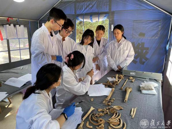 学习方式的转变也是学习效率提升的因素之一。参加雪村烈士项目前,2022级文博系本科生计嘉彤专门学了两个星期的骨骼分辨,却没完全掌握这项技术。“但在雪村,两三天就学会了。”