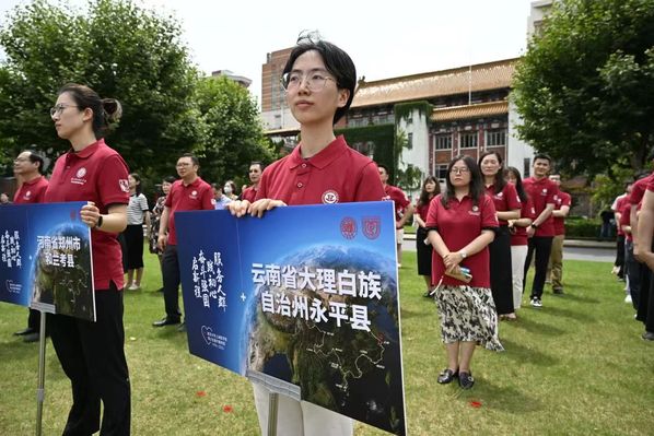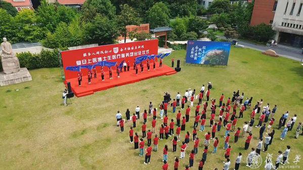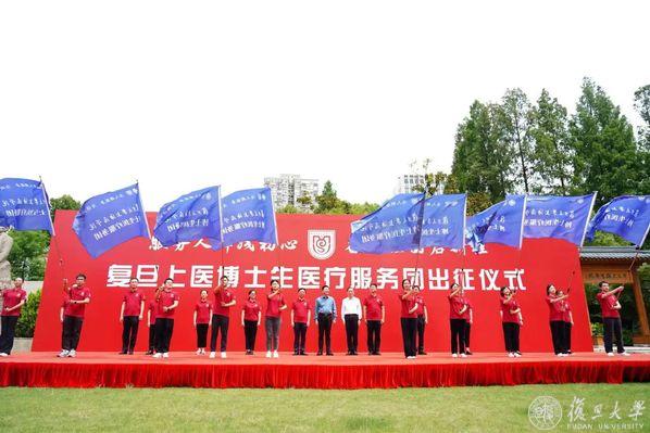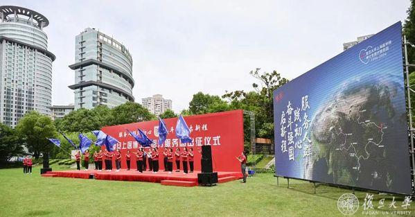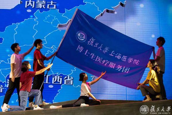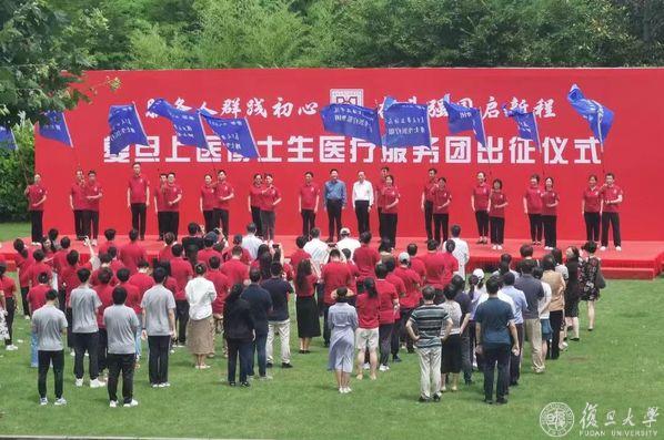 出征仪式上,10支博医团志愿服务队伍代表从裘新和袁正宏手中接过鲜亮的队旗,整装待发。7月4日起,200多名复旦上医师生志愿者将陆续启程前往江西、河南、云南、贵州、广西、山西、四川、新疆等中西部地区开展暑期医疗志愿服务。