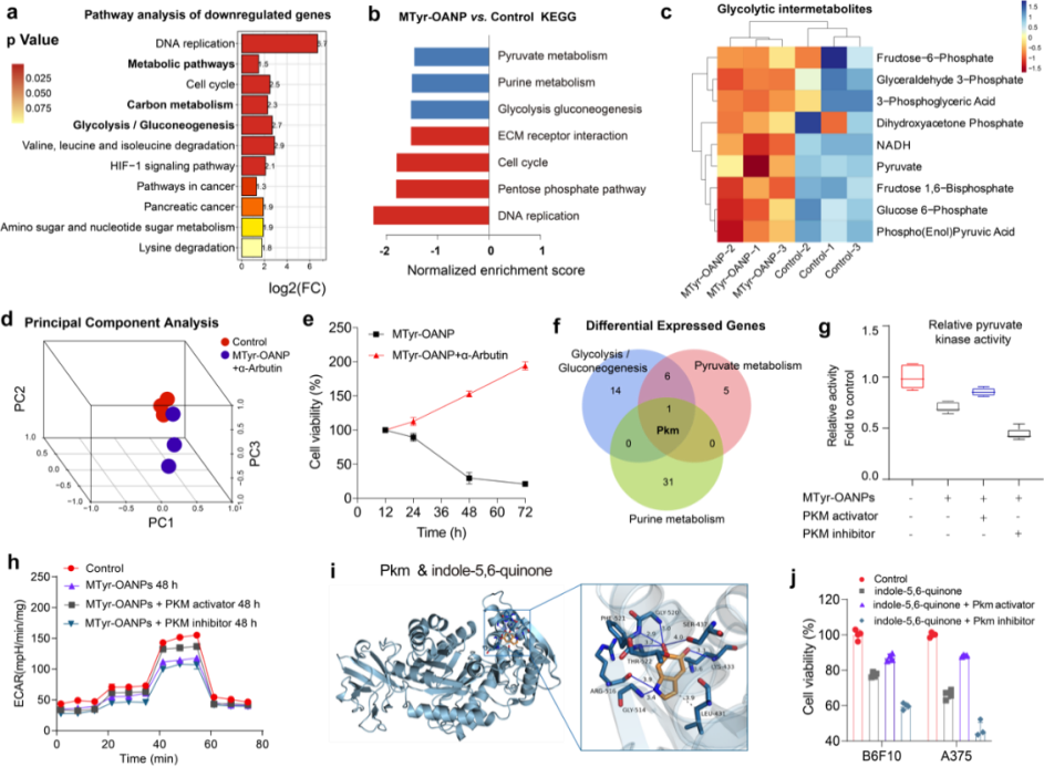 图1.MTyr-OANPs激活黑色素合成与抑制黑色素瘤细胞增殖的机制分析