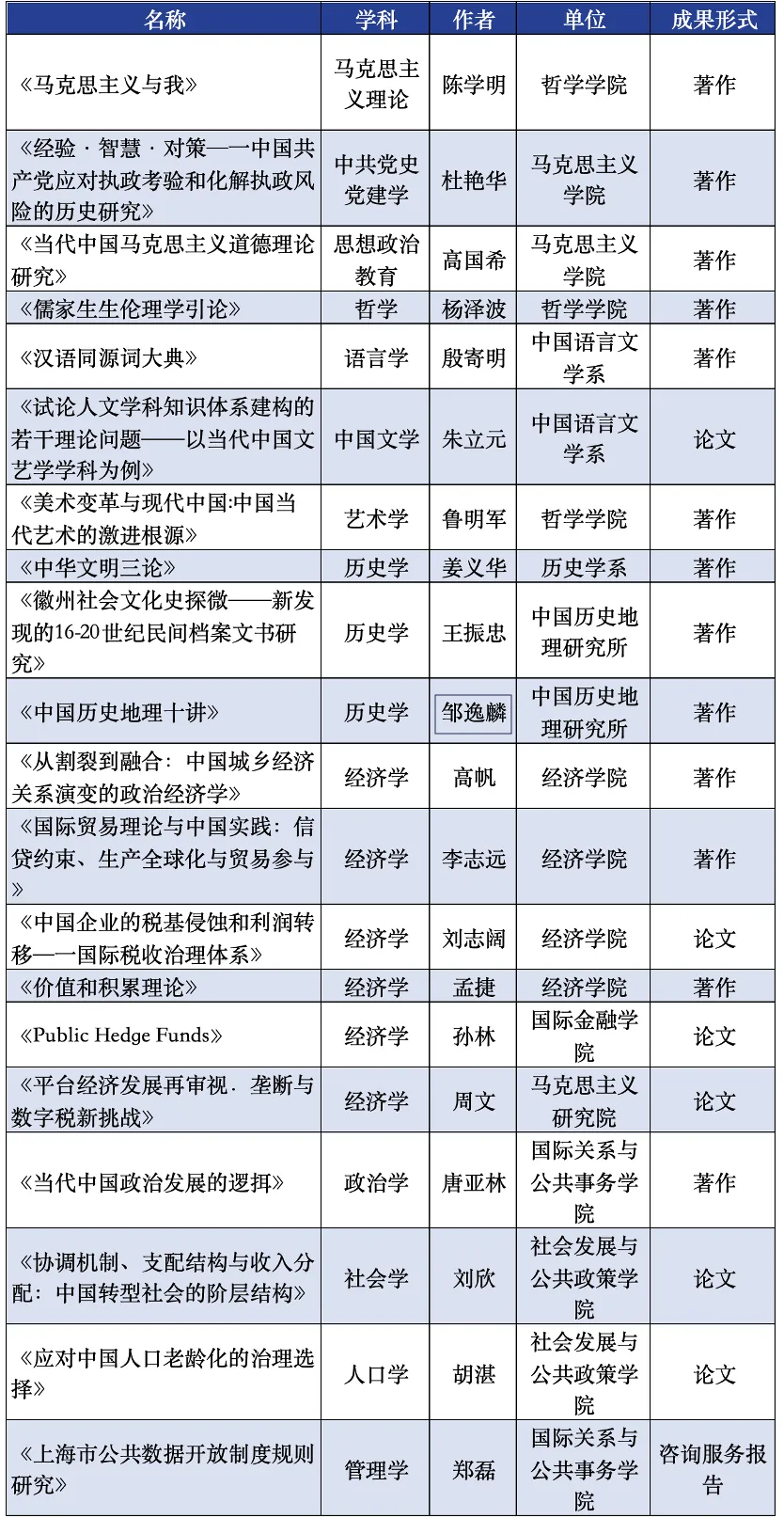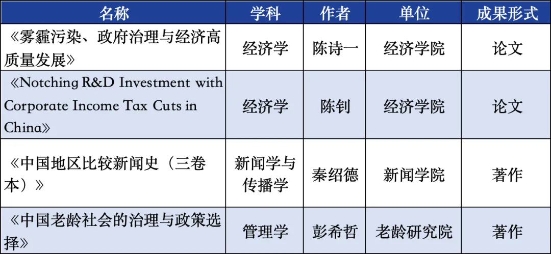 其中,复旦大学57项成果获奖,包括一等奖4项、二等奖22项、三等奖20项;普及读物奖3项;青年成果奖8项。